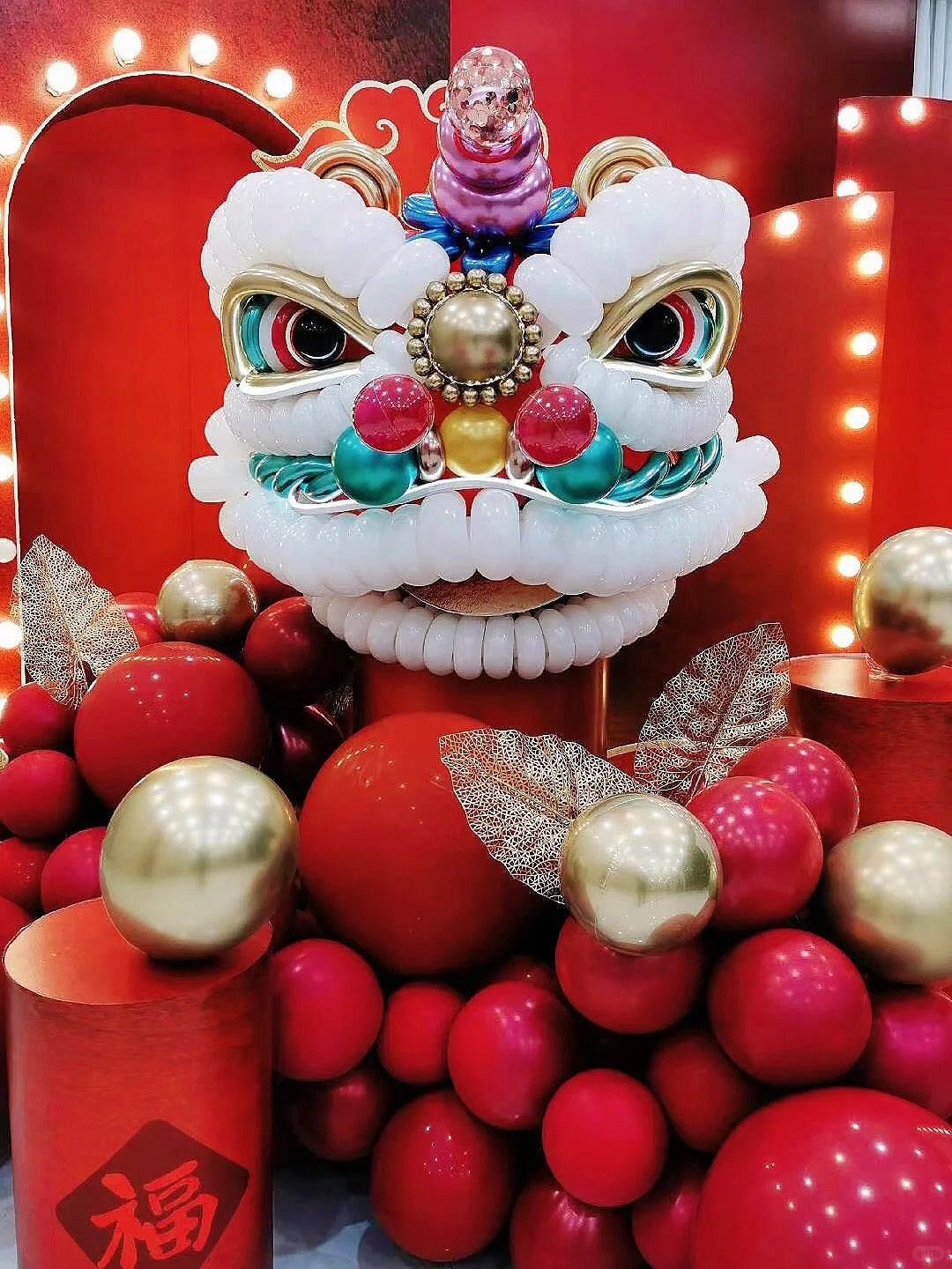 A regal guardian of the season — this show-stopping balloon lion is shaped in pure white pearl tones with glimmering red, jade, and gold accents. A symbol of strength, blessings, and honor, it’s made for Lunar New Year installations, brand openings, and high-visibility photo zones.