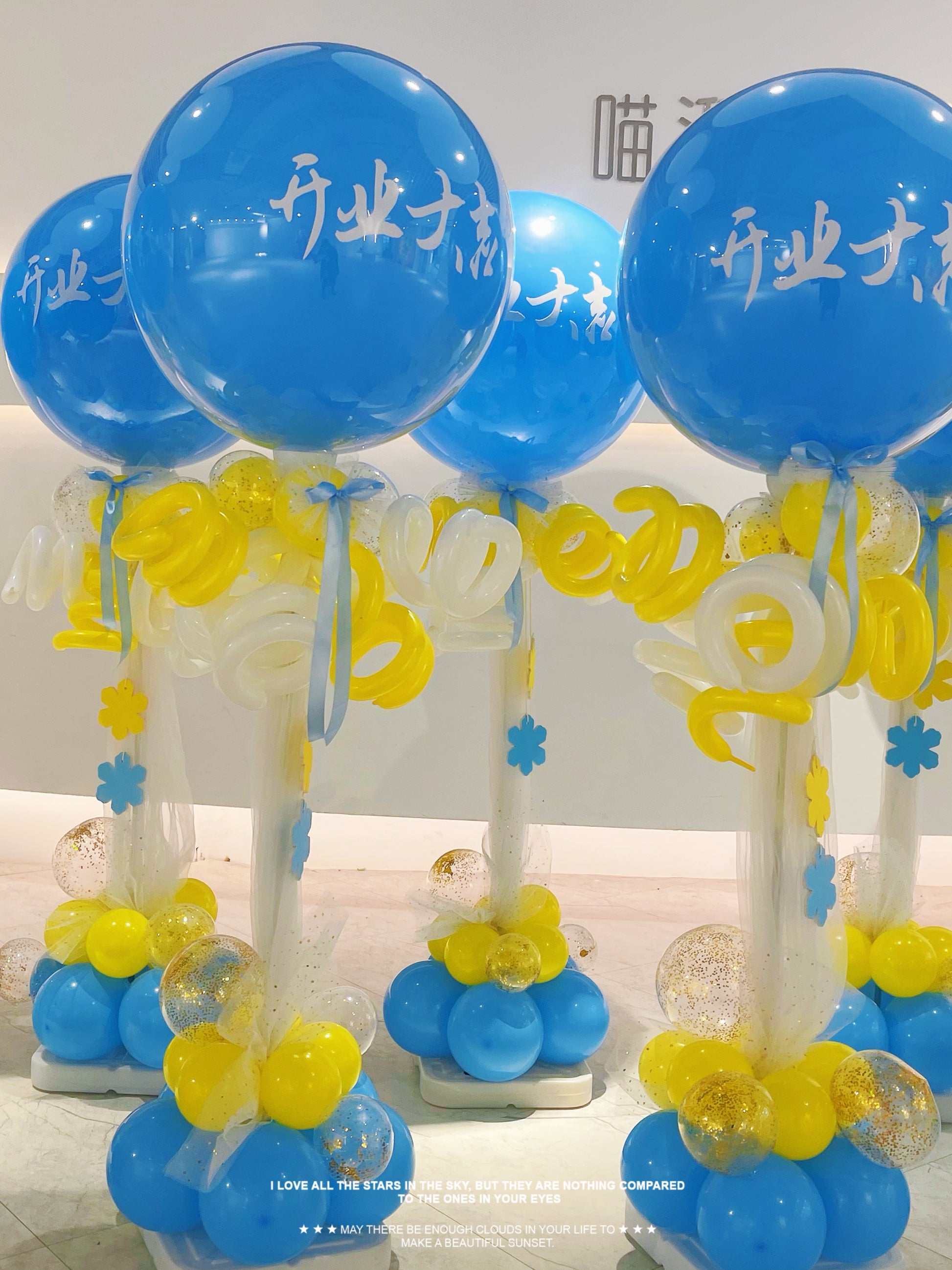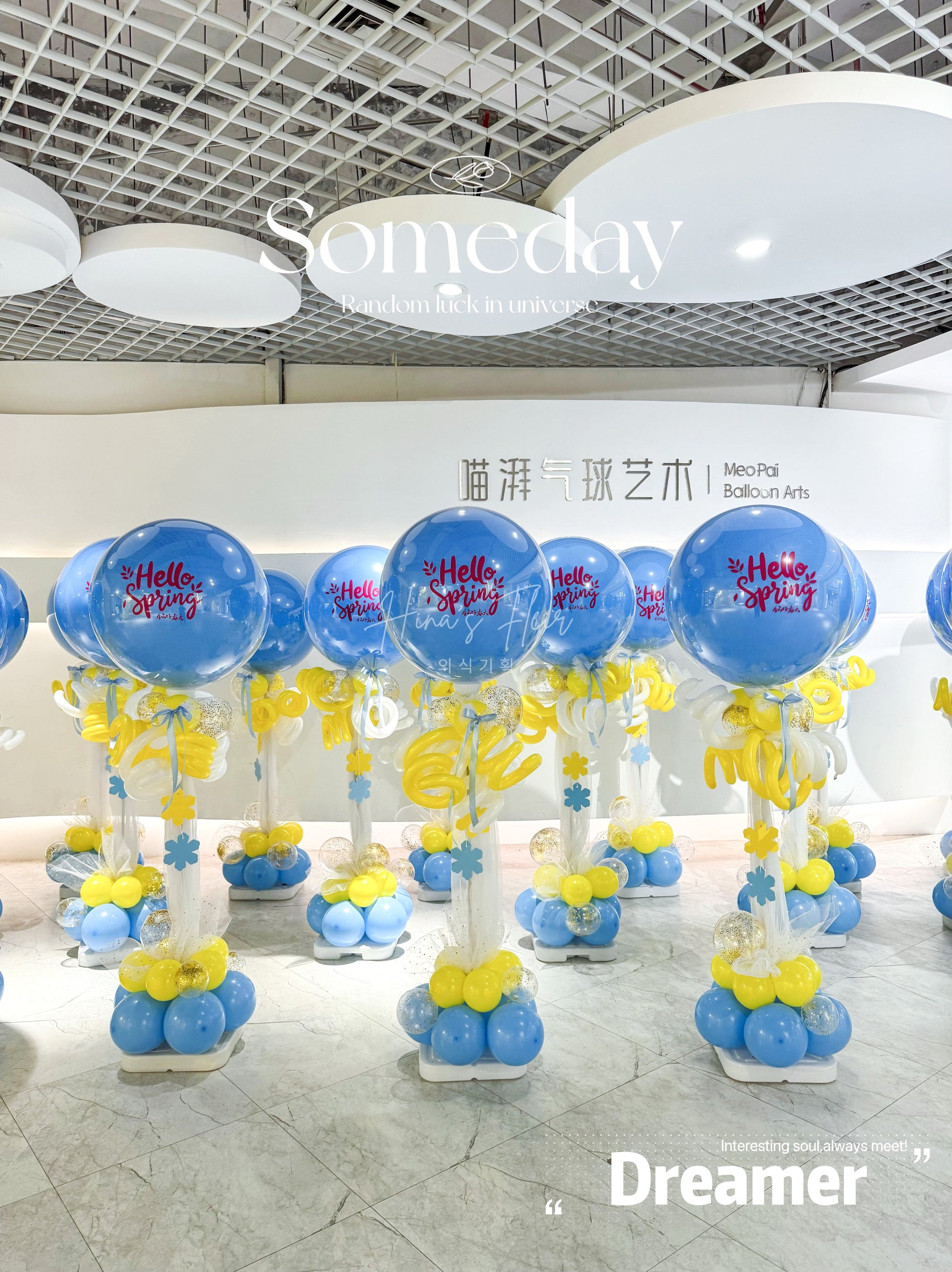 - Decorative accents: curly balloons, polka dot clear balloons, and structured support
