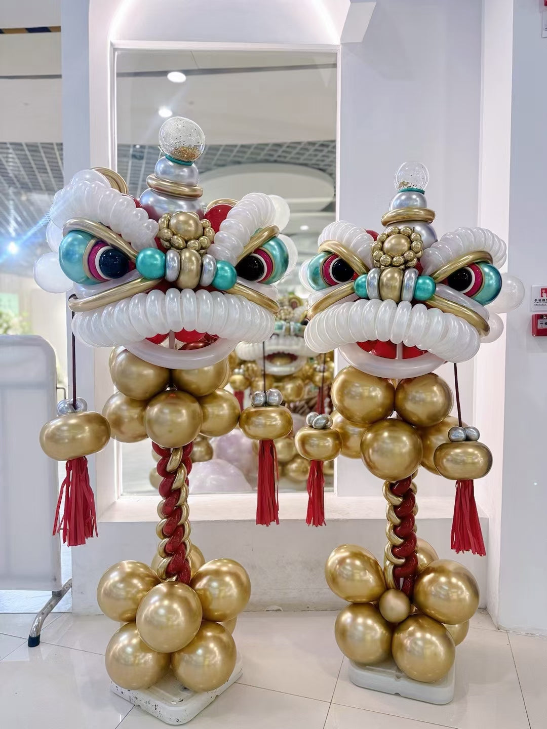 A regal tribute to prosperity and protection — this radiant gold-and-white lion dance sculpture brings luck, strength, and beauty to your space. Designed for grand events, store blessings, or traditional celebrations with a luxe modern flair.