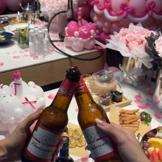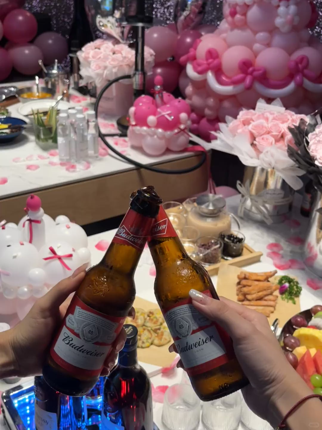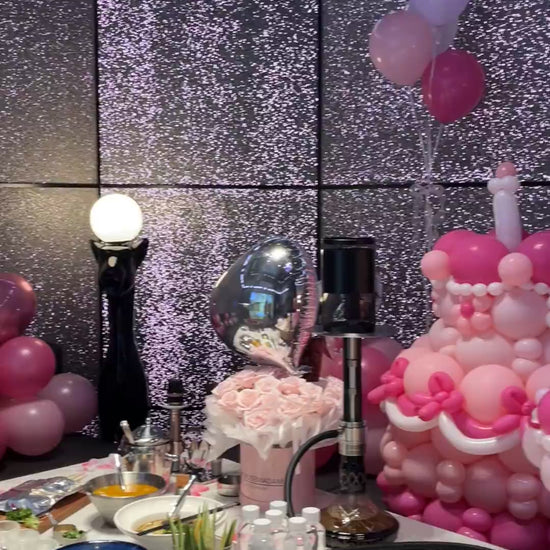 An enchanting tablescape designed for heartfelt birthdays, girls’ night, or luxury surprises. Featuring soft-pink florals, a playful balloon cake, and glimmering accents — this setup turns any meal into a moment worth remembering.